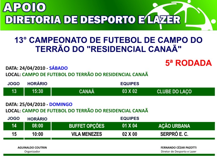 13ª campeonato de futebol de campo terrão do “Residencial Canaã “5 rodada