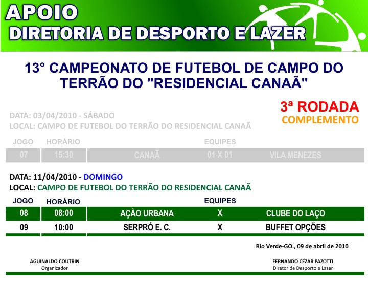 13º Campeonato de Futebol de Campo do Terrão “Residencial Canaã” – 3ª Rodada