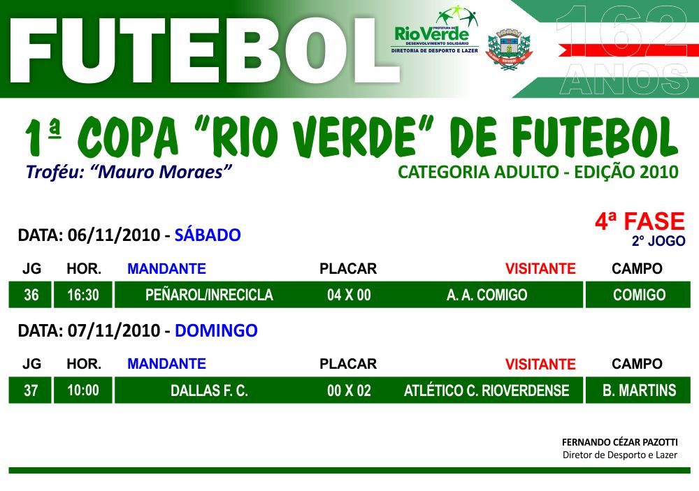 1ª Copa “Rio Verde” de Futebol – 4ª fase – Resultado