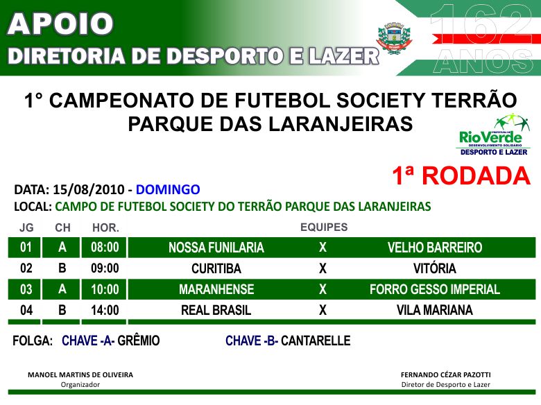 1º Campeonato de Futebol Society Terrão – Parque das Laranjeiras – 1ª Rodada