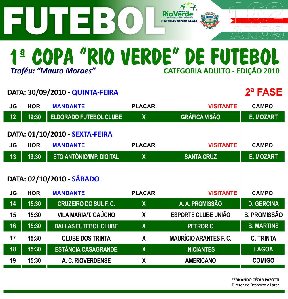 1º copa “Rio Verde ” de futebol 2º Fase