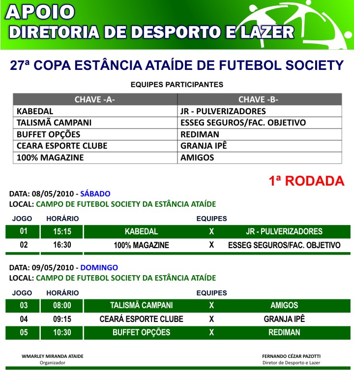 27ª Copa Estância Ataíde de Futebol Society – 1ª Rodada