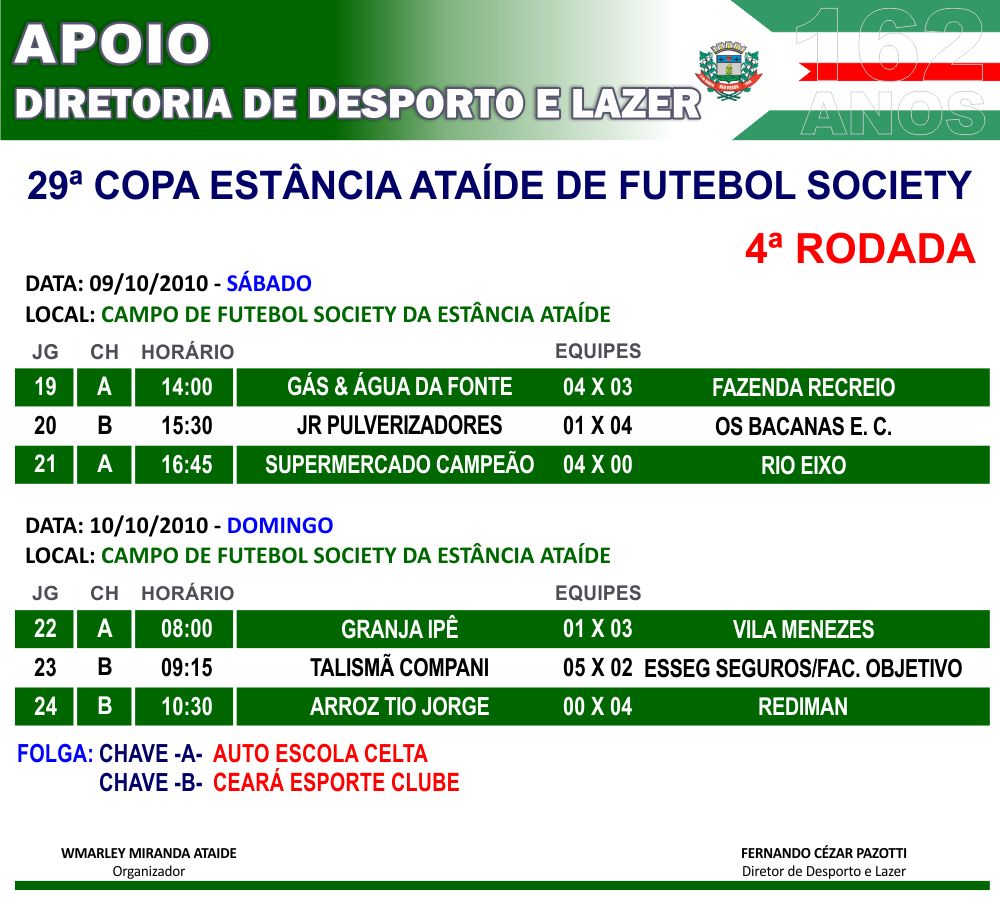 29ª Copa Estância Ataíde de Futebol Society – 4ª Rodada – Resultado