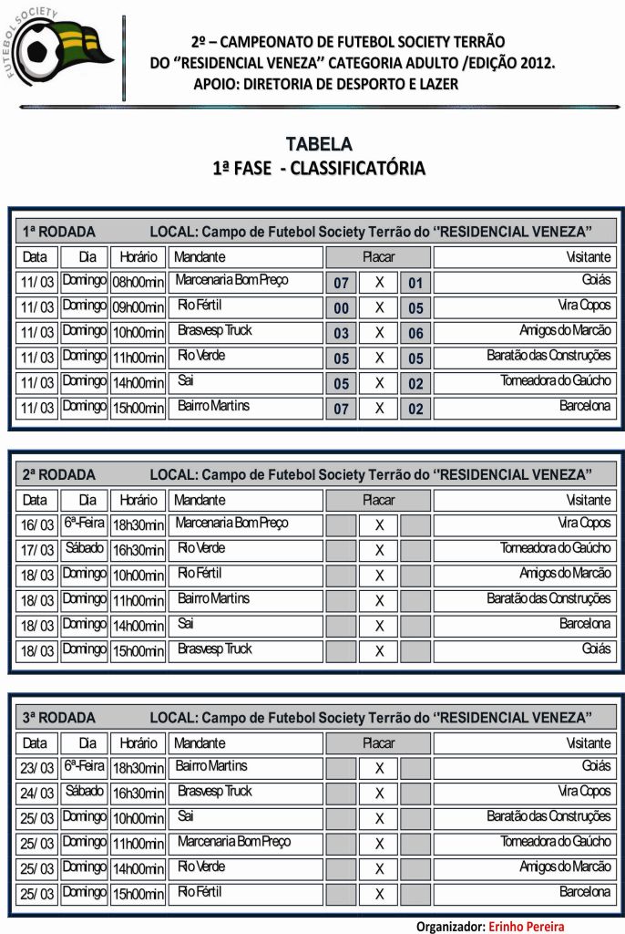 2º Campeonato de Futebol Society Terrão do “Residencial Veneza”: Tabela Classificatória