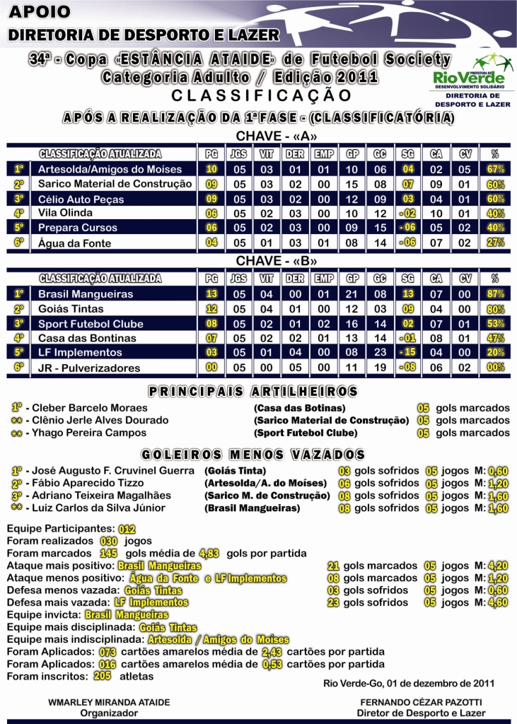 34ª Copa Estância Ataíde de Futebol Society: Classificação