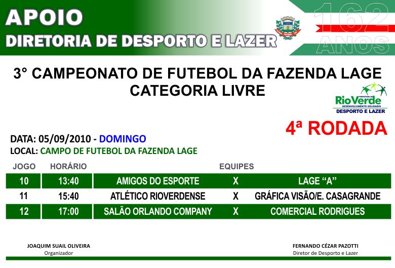 3º Campeonato de Futebol da Fazenda Lage – Categoria Livre – 4ª Rodada