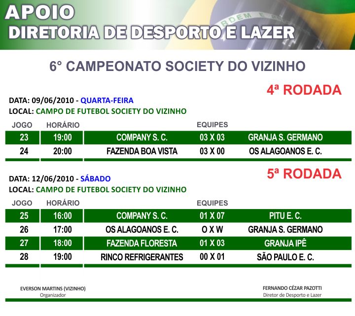 6º Campeonato Society do Vizinho- 4ª e 5ª Rodada
