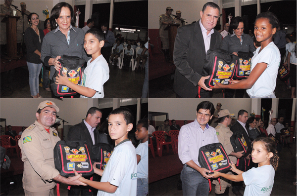 A solenidade teve início com a apresentação da tropa dos Bombeiros. Em seguida, o subtenente Roberto apresentou a tropa dos novos bombeiros Mirins ao comandante Cleber Cândido e logo após, todos ouviram o Hino Nacional Brasileiro. Diversas autoridades prestigiaram o evento, entre elas a secretária de Promoção Social, Clarice Martins; o comandante do 4º BBM, Tenente Coronel Cléber Cândido; osecretário de Comunicação, no ato representando o prefeito Juraci Martins, Cairo Fagundes; o presidente da Câmara, Elias Terra; o presidente do Conseg, Manoel Divino; além de outras autoridades municipais, familiares dos novos bombeiros mirins, gestores, professores, patrocinadores, imprensa e convidados. O comandante Cléber Cândido a importância do momento para a Corporação, destacando tratar-se de momentos de gratidão pel a parceria firmada entre os Bombeiros e a Secretaria de Promoção Social. O comandante ainda agradeceu aos familiares dos pequenos integrantes do projeto, por depositarem sua confiança no trabalho em que a equipe irá desenvolver durante o período. “Desejo que todos os 61 novos bombeiros mirins aproveitem cada minuto aqui e sei que todos estão ansiosos para usarem o uniforme, então espero vocês aqui cedo uniformizados e cuidem bem dele,” disse . O presidente da Câmara disse que é sempre um grande prazer participar de solenidades como essa e parabenizou a secretária de promoção social, Clarice, pela excelência do trabalho que vem desempenhando frente a sua pasta. Manoel Divino começou seu pronunciamento dando um recado aos novos bombeiros, dizendo que neles está o futuro do País. O presidente do Conseg ainda deixou uma mensagem a Clarice Martins. “A senhora é a mãezona de Rio Verde e como mãe tem cuidado muito bem dos seus filhos. Somos gratos por tudo,” finalizou. Cairo Fagundes levou o abraço do prefeito a todos da corporação e ressaltou que o Poder Público está sempre à disposição para somar com projetos como este. “Emociono-me sempre que participo de solenidades no Corpo de Bombeiros, afinal sei que os bombeiros são anjos sem asas. O Bombeiro Mirim ajuda na formação das crianças e de contribui na sua formação, inserindo valores de civismo. Sei que aqui temos grandes heróis,” ressaltou Clarice Martins. A secretária aproveitou para agradecer a parceria firmada com o Corpo de Bombeiros e desejou sorte aos novos bombeiros. Pablo Veloso, 9 anos, contou que estar no projeto é um sonho realizado. Segundo ressalta, seu objetivo é se tornar um grande bombeiro e poder salvar muitas vidas. Maria Francisca, sua avó, não segurou a emoção disse que não quer perder nenhum evento da do Programa e que está muito feliz de ver o neto em busca de seu sonho ser bombeiro. Adriele Ferreira, 10 anos, comentou que esta muito ansiosa para usar o uniforme e disse que achou tudo muito bonito. “Vou acordar cedo para vestir meu uniforme novo e vir muito animada participar das atividades que realizamos aqui. Amo participar do projeto,” disse. Na ocasião, foi feita a entrega simbólica dos uniformes pelas autoridades aos novos alunos e também dos materiais didáticos que serão usados durante o curso. Fotos: Washington Oliveira Os 61 novos Bombeiros Mirins participaram da solenidade Kit que será usado pelos alunos durante o curso foi apresentado pelas autoridades Entrega dos kits às crianças foi feita pelas autoridades Simbolicamente, subtenente Roberto entrega material didático à secretária de Promoção Social Entrega simbólica de equipamentos de informática, que serão utilizados no aprendizado dos Bombeiros Mirins Comandante Cléber fazendo abertura oficial do evento “Sei que aqui temos grandes heróis,” disse Clarice Secretário de Comunicação, Cairo Fagundes, que na oportunidade representou o prefeito Juraci MartinsBombeiros Mirins posam para foto com autoridades