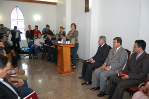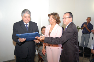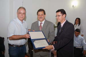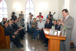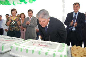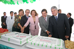 O governador Alcides Rodrigues e o prefeito Juraci Martins prestigiaram o evento e ressaltaram a importância da unidade hospitalar para o oferecimento de um serviço de saúde qualificado à população de Rio Verde e região. Também participaram da solenidade o vice-prefeito Demilson Lima e grande parte do secretariado municipal. Na oportunidade, Governador e Prefeito receberam uma placa de homenagem em reconhecimento ao apoio, incentivo e trabalho prestado ao Hospital. “Aqui aprendi o princípio da hierarquia, a respeitar o ser humano e amar a Deus”, disse o prefeito Juraci Martins que compõe a história do Hospital onde atuou como médico pediatra. “Aqui também pude me realizar como homem e como médico”, disse. Juraci Martins disse que apesar do momento difícil, a Prefeitura está iniciando seus passos. “A partir de 2010 os índices econômicos indicam que o Brasil será o primeiro país a sair da crise. Temos bons planos para o próximo ano e, sem dúvida nenhuma, continuaremos dando nossa parcela de contribuição a este Hospital”. O Governador enalteceu o trabalho do prefeito Juraci Martins, ressaltando que ele já fez muito pelo hospital como homem e como profissional. “Como Chefe do Poder Executivo vem enfrentando desafios diuturnamente e não tem medido esforços para ajudar esta entidade”, evidenciou. Alcides disse ainda que sua parceria com o Município continuará firme, pois Rio Verde é referência não só para a região ou para o Estado, mas para o Brasil. Conforme destacou, o Hospital Dr. Gordon tem história. “Por aqui passaram médicos renomados de Goiás, além de personalidades ilustres também do meio político e empresarial. “Com muita alegria participo desta comemoração”. A diretora administrativa e financeira do hospital Erselha Cabral agradeceu a todas as parcerias, ressaltando que o poder Público Municipal tem sido fundamental na superação das dificuldades. Na mesma oportunidade, foi oferecido um bolo ao governador Alcides Rodrigues, em comemoração ao seu aniversário que será no próximo dia 08. Em clima festivo, com direito a parabéns a você, o café da manhã prosseguiu até por volta de 12 horas. Reconhecimento – A técnica de enfermagem Sônia Correa Guimarães, tem 63 anos, e há 36 trabalha no Hospital. "Tenho uma história aqui. Fiz meu curso aqui, comecei a trabalhar, criei e formei meus filhos. Até me aposentei, mas não consigo ficar longe daqui", disse. Conforme destacou, o Hospital Presbiteriano Dr. Gordon fez um grande referencial. "Aprendemos a gostar muito daqui, por atender com carinho e salvar vidas. Este é o principal diferencial desta entidade", finalizou. Fotos: Cairo Fagundes Prefeito e Governador chegam ao Hospital Sônia engrandece o trabalho realizado pela unidade "Aqui aprendi o princípio da hierarquia" , diz Juraci "Por aqui passaram médicos renomados", ressalta Alcides Autoridades e convidados assistem ao culto ecumênico Sec. de Saúde Paulo do Vale, Juraci Martins e Alcides Rodrigues recebem a homenagem Alcides Rodrigues sopra velinha do bolo de aniversário oferecido pelo Hospital
