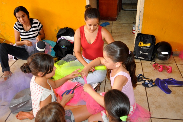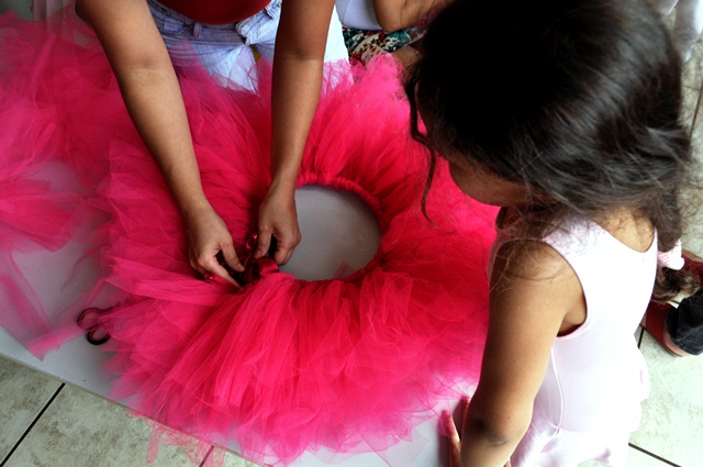 As 24 alunas do balé confeccionam tutu para aula de balé