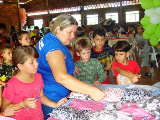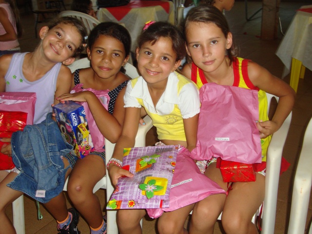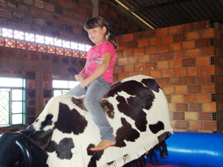 O evento incluiu uma programação diferenciada, com atrações como pula-pula, touro mecânico e piscina de bolinhas. Todos ganharam presentes e se divertiram muito durante toda a manhã, que foi encerrada com um almoço. Um dos maiores diferenciais foi o touro mecânico As crianças puderam se divertir no pula pula Todos os alunos receberam presentes Meninas exibem os presentes recebidos Para fechar o ano de 2010 foi servido um almoço a todos os presentes