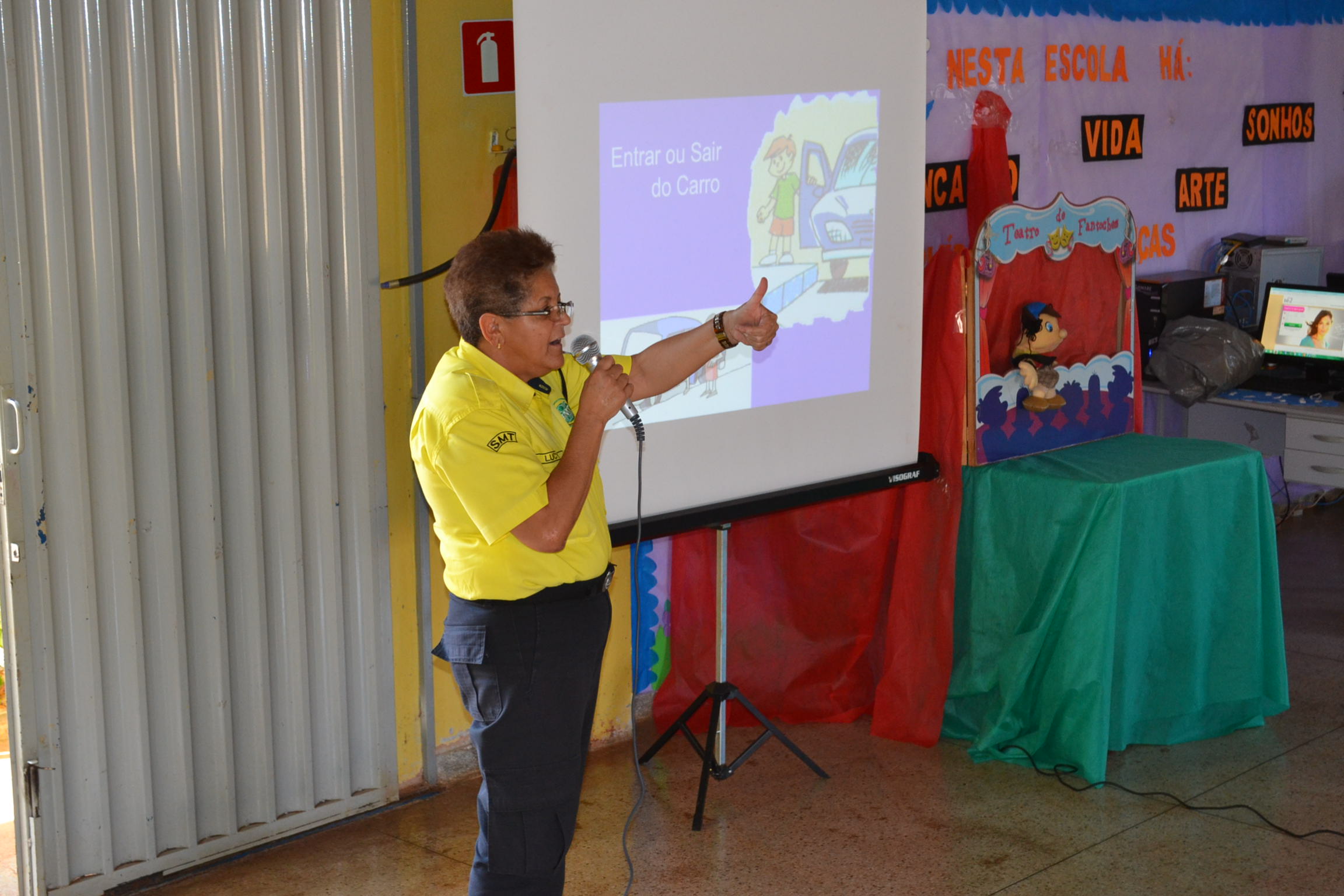 A palestra teve como tema “Educação para o Trânsito”, que foi ministrada de forma dinâmica aos alunos, com a utilização de fantoches.
