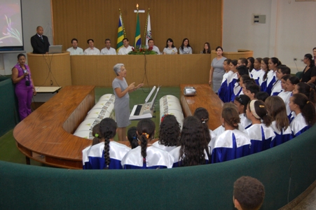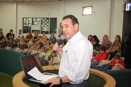 Assim como Lean, outras centenas de crianças terão acesso a um acervo extenso e diversificado. Graças ao Programa Baú do Livro, lançado nesta manhã pela Prefeitura de Rio Verde, através da Secretaria de Educação, em parceria com produtores rurais da região. O projeto consiste em levar até os estudantes do campo obras literárias diversas. A solenidade foi aberta com a apresentação do Coral de Estudantes de Rio Verde, que cantou a música Deus e Eu no Sertão. Em seguida, a mesa diretiva foi composta pelo prefeito Juraci Martins, o secretário de Educação, Levy Rei de França, a representante dos produtores rurais da região, Patrícia Barzotto Bufon, o coordenador de biblioteca de Rio Verde, Leonardo Lopes, a representante da gestora municipal (zona rural) Cinara Cruvinel, o secretário de Agricultura, Pecuária e Abastecimento, Geraldo Ribeiro de Carvalho e representando os alunos, a estudante Rainiele Alcântara Tavares. Logo após, as autoridades fizeram a entrega oficial do Baú aos alunos que representavam sua Escola. Segundo Leonardo Lopes, o projeto é inovador por dois motivos: Prestigiar as crianças através da parceria e o interesse à dinâmica e valorizar a importância que a educação está proporcionando aos alunos, tendo acesso ao conhecimento. “É através de um projeto como este é que motivamos o prazer com a leitura. A idéia do baú é algo lúdico e bem atrativo para as crianças, o que faz com que elas se interessem ainda mais pelas obras”, ressaltou Leonardo. Para Ranulfo Emrich Neto, representante do Grupo de Apoio a Pesquisa do Sudoeste(Gapes), a participação no projeto é gratificante. “Esperamos que deste trabalho possam surgir grandes leitores e gostaria de homenagear Marion Kompier, idealizadora do projeto. Que no futuro venhamos fazer novas parcerias com o município”, afirmou. O secretário Levy destacou a importância do evento e a implantação de projetos inovadores ao longo desta gestão. Segundo ele, apesar do pouco tempo, muitos frutos já estão sendo colhidos no segmento educacional em Rio Verde. Entre os projetos executados até agora, o Secretário destaca a visita às Escola para avaliação da gestão administrativa e rendimento escolar; os projetos sociais voltados para saúde e trânsito; os investimentos em infraestrutura, além dos projetos de revitalização da biblioteca e do Baú do Livro. “O grande diferencial deste projeto, cuja divulgação saiu em rede estadual, é a simplicidade de sua execução e o forte impacto, com resultados, que gera entre os estudantes”, evidenciou. Ao final de sua fala, Levy desejou que a Secretaria de Educação, através de sua equipe, continue com projetos como este. “Tais projetos só confirmam a proposta deste governo desde o início do mandato: a de ser um governo diferente, que faz muito para garantir a qualidade de vida do rio-verdense”. Juraci Martins começou seu discurso falando da alegria de vivenciar um momento tão agradável com aqueles estudantes. “Ser prefeito não é fácil, mas quando vejo essas crianças, a apresentação magnífica deste coral, me sinto gratificado em ser prefeito”, disse. Conforme evidenciou, através da educação é que se fazem todas as mudanças. “O mundo de hoje é do conhecimento, principalmente do conhecimento útil. O projeto muito nos engrandece, pois teremos a certeza de que a cultura estará sendo levada também aos alunos do campo. Os pais são o espelho dos filhos, por isso o incentivo à leitura deve começar em casa, na família de cada um”, ressaltou. Baú do Livro: O projeto tem o objetivo de levar maior qualidade de ensino e também incentivar a leitura e cultura de forma geral aos estudantes da zona rural. Para sua idealização, a Prefeitura de Rio Verde confeccionou os baús e o grupo de produtores entrou com o acervo. Fotos: Cairo Fagundes