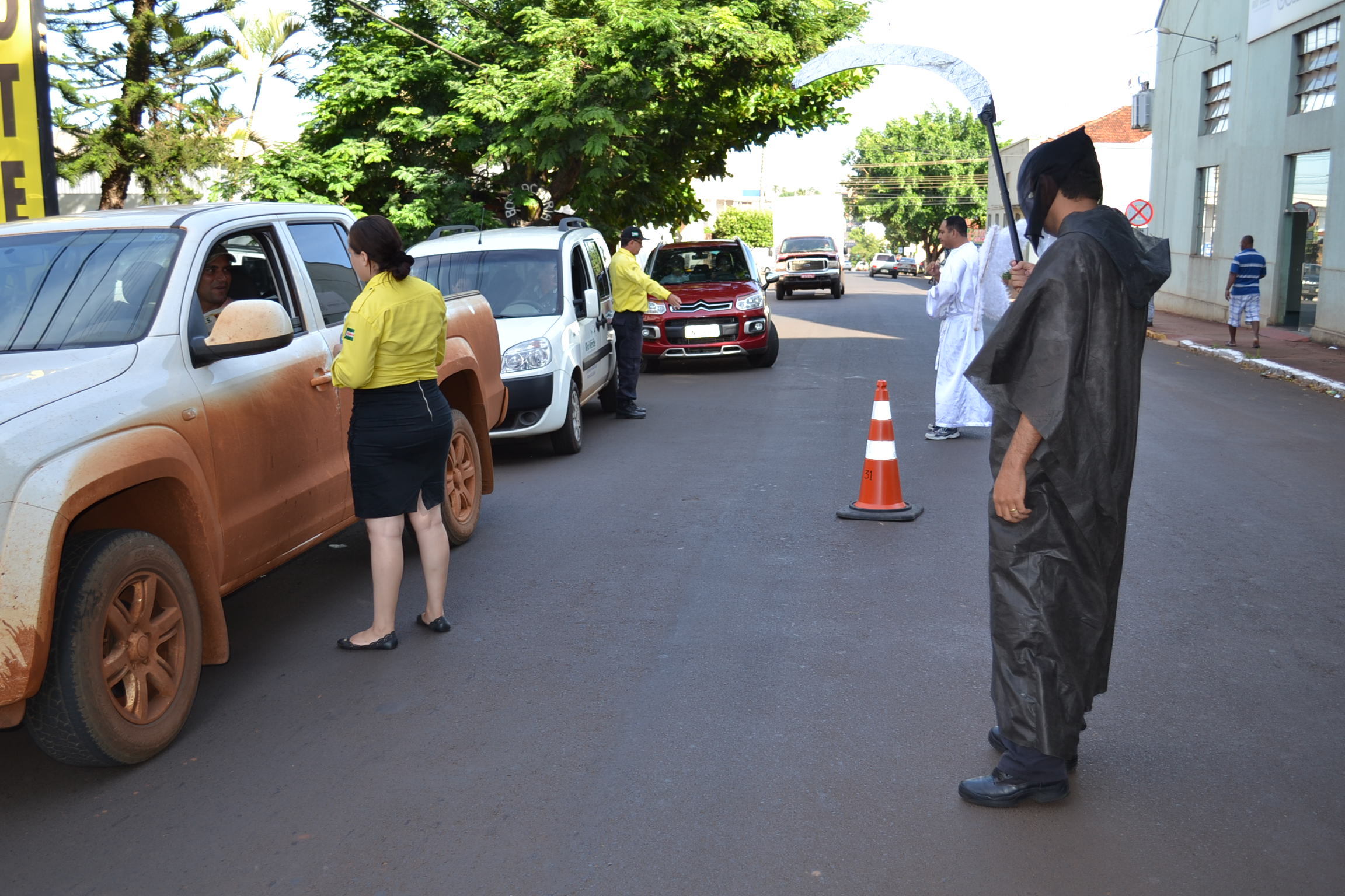 A campanha, que tem como tema “HISTÓRIA DE CARNAVAL DIVERTIDA, NÃO ENVOLVE DIREÇÃO E BEBIDA”, visa conscientizar os condutores sobre os riscos da combinação de álcool e volante, principalmente nos períodos de feriado prolongado como o Carnaval. Durante as abordagem, a equipe de educação para o trânsito, utilizando como personagens um anjo, a morte e um bêbado, fizeram orientações aos condutores que trafegavam pelo trecho e entregaram panfletos alusivos à campanha, além de camisinhas e brindes. “Estamos realizando um trabalho de sensibilização com os motoristas, para que não dirijam sob o efeito de álcool e respeitem os limites de velocidade em nossas vias. No Carnaval, o excesso deve ser só de alegria”, afirmou o presidente da AMT, Cabo Moraes. As blitze educativas serão realizadas até o dia 13 de fevereiro em alguns pontos da cidade. Confira abaixo o cronograma das blitze: 12/02/15 (Quinta-feira) das 17h às 18h30 Avenida Presidente Vargas, em frente a empresa COMIGO. 13/02/15 (Sexta-feira) das 13h às 16h Blitz educativa na empresa BRF- Brasil Foods. 13/02/15 (Sexta-Feira) das 17h às 18h30 Blitz educativa Na Rua Argentina, próximo a AABB. Fotos: Jéssica Mendes Rosa Equipe da AMT realiza blitz educativa na Rua Nizo Jaime de Gusmão Condutores receberam panfletos alusivos à campanha, além de camisinhas e brindes As blitze educativas serão realizadas até o dia 13 de fevereiro