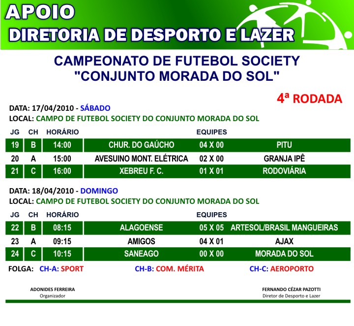 Campeonato de Futebol society “Conjunto Morada do Sol” 4ª rodada