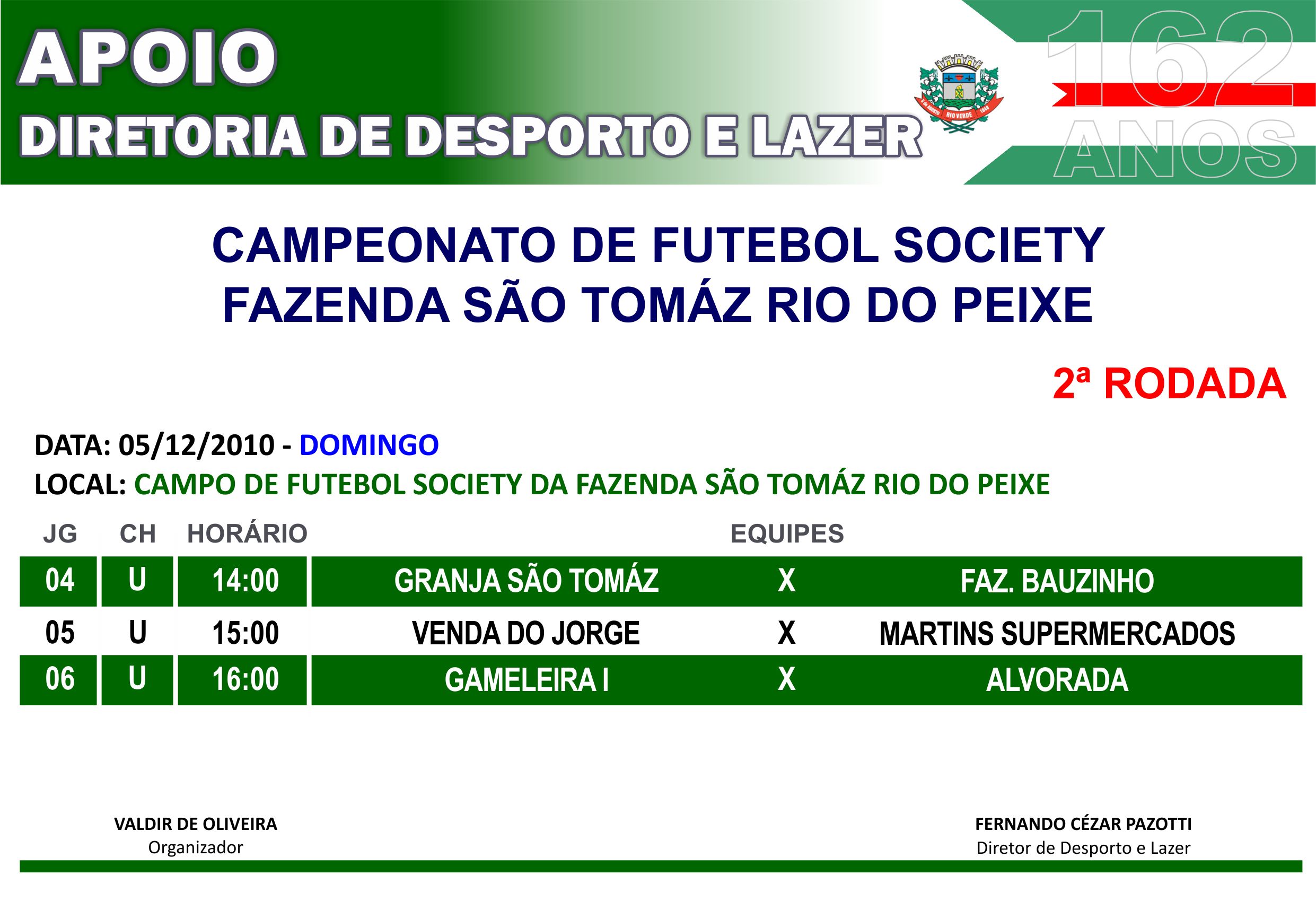 Campeonato de Futebol Society Fazenda São Tomaz Rio do Peixe – 2ª Rodada