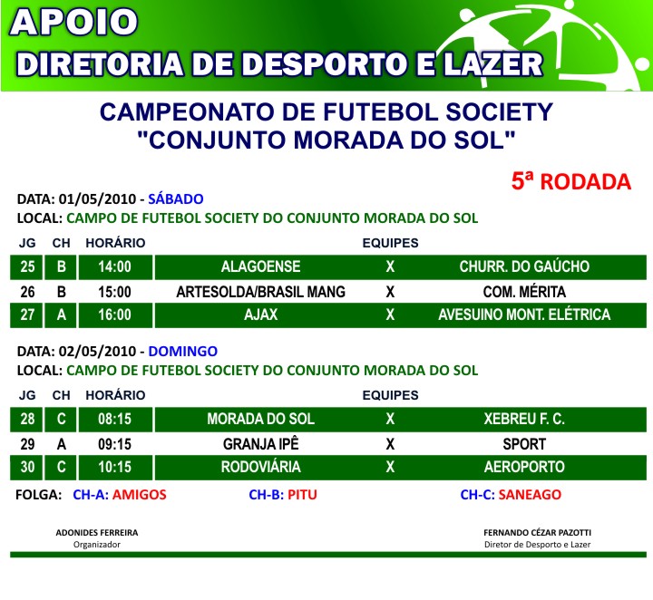 Campeonato de Futebol society”Conjunto Morada do Sol”5º rodada