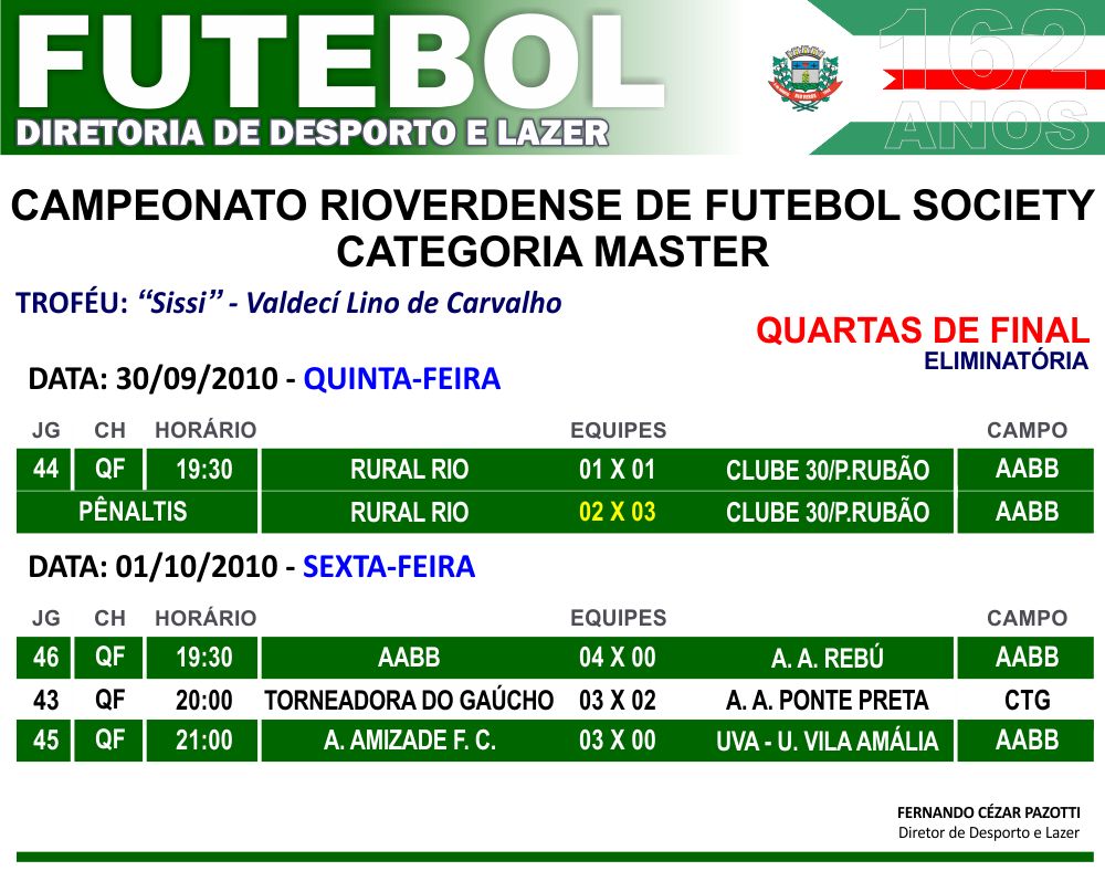 Campeonato Rio-verdense de Futebol Society Categoria Master – Quartas de Final – Resultado