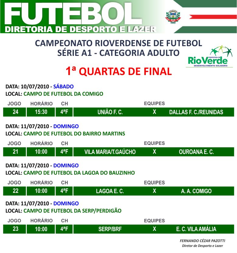 Campeonato Rioverdense de Futebol – Série A1 – Categoria Adulto – 1ª Quartas de Final