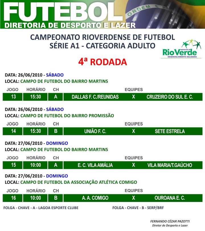 Campeonato Rioverdense de futebol -Série A1 “Categoria Adulto”4º rodada