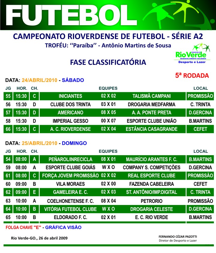 Campeonato Rioverdense de futebol -Série A2 “Troféu Paraíba”- Fase Classificatória