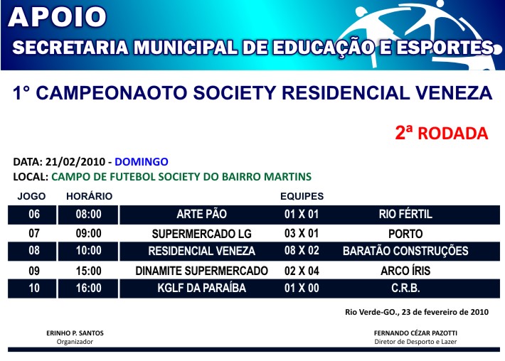 Campeonato Society do Residencial Veneza – 2ª rodada