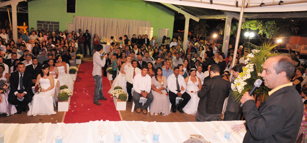 Aconteceu na noite desta sexta-feira, 25, o casamento comunitário para 18 casais de Lagoa do Bauzinho, na sede da subprefeitura do distrito. O evento, uma realização da Prefeitura de Rio Verde, por meio da Secretaria de Promoção Social, é organizado com o intuito de fortalecer, entre os casais, os vínculos familiares. Além disso, com o casamento, os participantes tem a oportunidade de regularizar sua união estável. Essa foi a primeira edição de 2012 do casamento comunitário, que também foi inédito entre os distritos de Rio Verde.