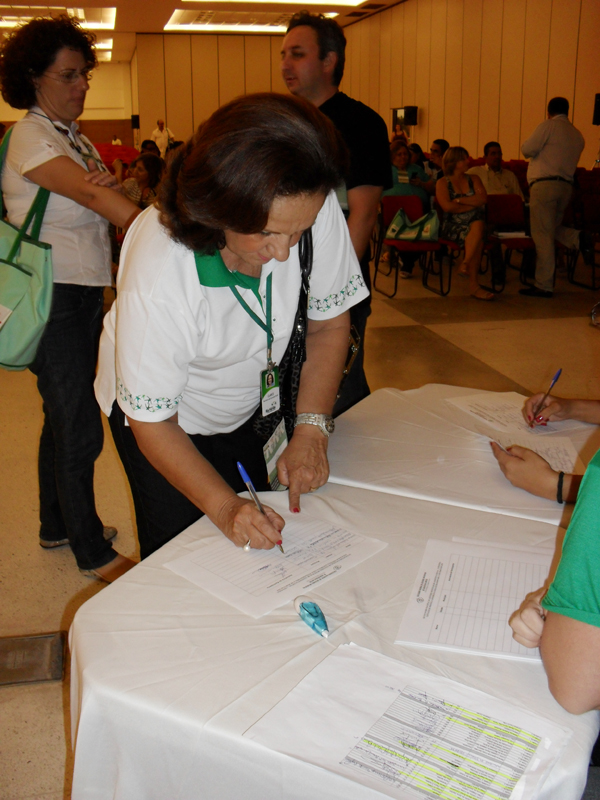 A Secretária de Promoção Social, Clarice Martins, participou do encontro acompanhada das seguintes servidoras da pasta: coordenadora geral da Secretaria, Norma Moraes, responsável técnica da Assistência Social, Rosana França e assistentes sociais Ana Carolina Franco, Ida Assunção e Karina Guimarães. O encontro reuniu gestores de assistência social de todos os municípios brasileiros com o intuito de capacitar e promover uma troca de experiências de boas práticas, podendo assim avançar nas políticas públicas na área social. Clarice Martins ressaltou que o momento possibilitou a aquisição de novos conhecimentos e a troca de experiências sobre projetos sociais em todo o Brasil. Vale ressaltar que a secretária de Promoção Social está entre as cinco delegadas do Congemas do Estado, cuja escolha foi realizada em Goiânia, durante reunião do Colegiado Estadual dos gestores da Assistência Social/Congemas. “Avaliação e Desafios do Sistema Único da Assistência Social no Brasil e a Fotografia da Gestão Municipal de Assistência Social” e “A pergunta que não quer calar” foram dois temas debatidos no evento, além de inúmeras oficinas realizadas durante os três dias. Além destes, o funcionamento do Cras e do Creas também foram discutidos no encontro em Natal. Fotos: Secretaria de Promoção Social Clarice Martins e equipe assistindo a uma das palestras Secretária de Promoção Social assina lista de presença E destaca a importância deste evento para troca de experiências sobre projetos sociais Pausa para foto com o grupo que a acompanhou
