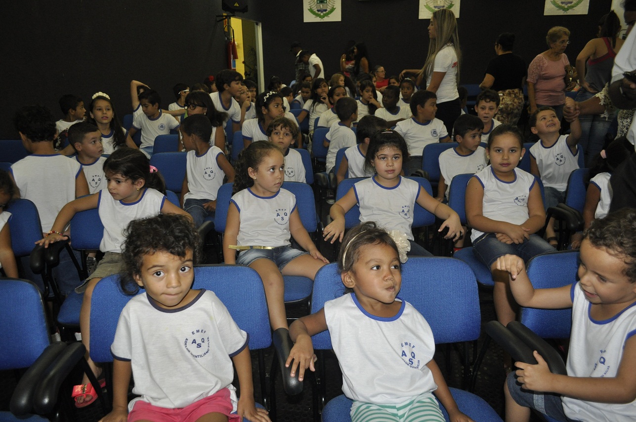 Alunos de 4 escolas municipais da rede municipal de ensino encantaram aos adultos presentes, ao entoarem o Hino Nacional, na cerimônia de Premiação do Concurso Água, ontem, 07 de abril, no auditório da UniRV.