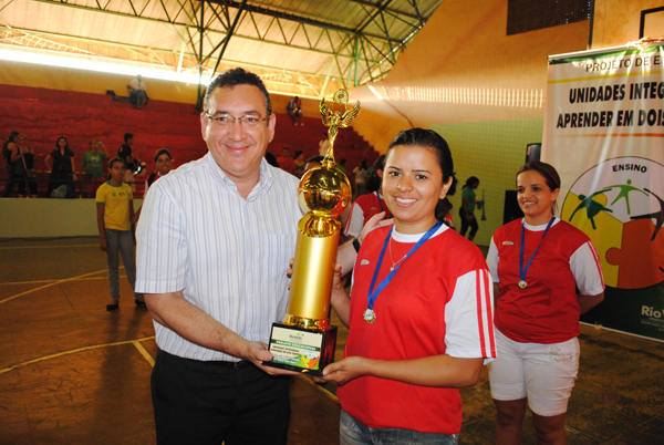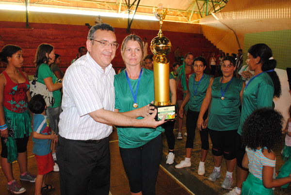 O evento foi aberto pelo Secretário de Educação Esporte e Lazer, Levy Rei de França, juntamente com o Diretor de Esportes Fernando César Pazzoti, o Superintendente da Juventude, Ricardo Júnior e a Coordenadora das Creches e Centros Municipais de Ensino Infantis, professora Olinda Marques. A programação contou com a participação de mais de 50 participantes, que formaram os times através dos Núcleos das Unidades do Ensino Fundamental, e foram incentivadas pelas torcidas organizadas de cada núcleo que, juntos, fizeram bastante barulho animando a todos. “São ações como essa que aproxima pais, alunos, professores e poder público,. Quero parabenizar os organizadores e todos os participantes por esse grande evento, que mostra a importância do esporte na vida das pessoas e, ao mesmo tempo, proporciona lazer e uma convivência saudável entre todos,” destacou Levy. Fotos: Washington Oliveira As mães deram seu melhor no campeonato Levy fez questão de participar da programaçãoFamiliares organizaram suas torcidas às mães Grupo de fanfarra da escola animou os presentes Troféu foi entregue à equipe segunda colocada Equipe vencedora recebe troféu das mãe do secretário Atlestas posam para foto com secretário de educação