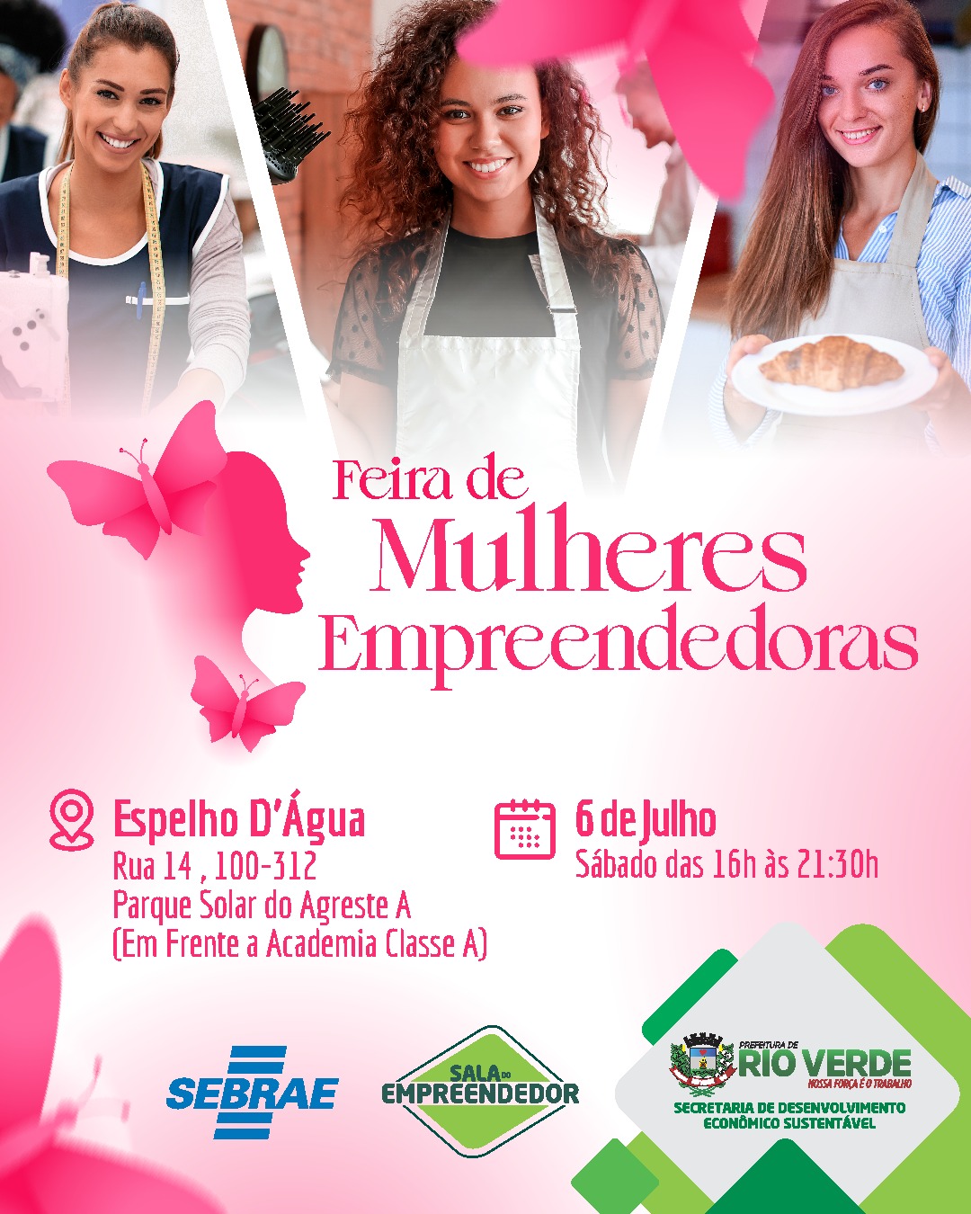 A Feira de Mulheres Empreendedoras foi criado para valorizar as micro e pequenas empreendedoras de Rio Verde. Mulheres que fabricam produtos como alimentos, artesanatos, costuras entre tantos outros trabalhos feitos a mão. A Prefeitura de Rio Verde por meio da Secretaria de Desenvolvimento Sustentável apoia e convida toda a população para a 7ª edição da Feira das Mulheres Empreendedoras, dia 06 de julho, das 16 às 21:30h no Parque Espelho d´água.