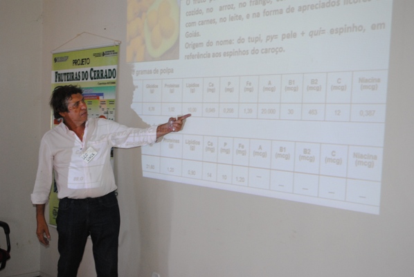 Segundo a Secretária de Agricultura, Marion Kompier, o objetivo do curso é informar mais o sobre o potencial do cerrado, que pode ser considerado como reserva legal. Ela explica que a reserva legal é constituída por lei que determina que 20% da propriedade rural tem que ter uma cobertura florestal e essa cobertura pode ser de frutas do cerrado. O lado positivo de plantar cerrado na reserva legal é que além de estar na lei o cerrado pode ser explorado. “A nossa meta é aumentar a área de cobertura. Para isso os produtores têm que ter muita conscientização e envolvimento,” ressaltou Kompier. No segundo dia os temas foram Agroextrativismo, Agroindústria, Plantas Medicinais, Associativismo, Cooperativismo, Associativismo e Arranjo Produtivo de Fruteiras do Cerrado. O participante Helio Divino, que é extrativista de óleos de plantas do cerrado, sugeriu a criação de um jardim botânico em Rio Verde. “Seria um lugar onde todos podem trabalhar, buscando a preservação e recuperação de nossas espécies.” Helio ainda cita uma planta que tem uma demanda mundial, chamada de “Nó de cachorro”, que praticamente desapareceu do cerrado. “O jardim botânico servirá para replicar, ter um banco de espécies. Poderíamos fazer um consórcio com os fazendeiros para recuperar as áreas degradadas e fazer do lugar um local de estudos fora das faculdades,” explanou o Extrativista. A Secretária gostou da ideia e se predispôs a elaborar um projeto para a realização de um jardim botânico. “Ele também poderá ser uma nova opção de lazer e turismo para os rio-verdenses,” disse. Com todo aprendizado e novas ideias, no último dia do curso, os participantes foram a campo e puderam ver na prática o que foi falado na teoria. “Todos que estão aqui gostam e querem melhorar o meio ambiente, vivendo, tendo uma renda e ao mesmo tempo cuidando do cerrado,” finalizou. Fotos: Washington Oliveira Os participantes do curso participaram tirando as suas dúvidas Léo Lince explicou sobre as frutas do Cerrado