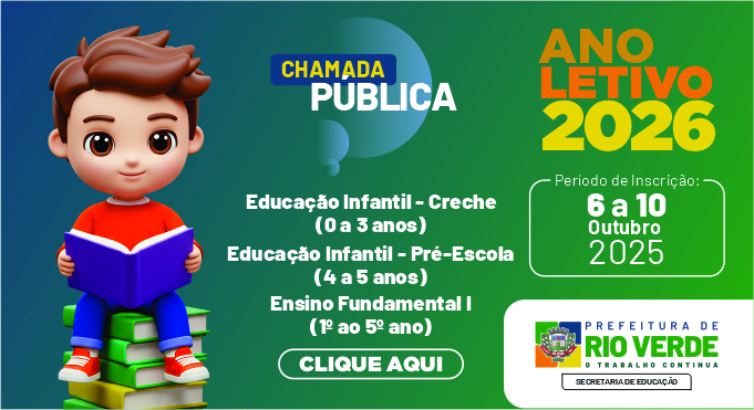 A Secretaria Municipal de Educação informa que está aberta a Chamada Pública Escolar 2026 para ingresso de novos alunos na Rede Municipal de Ensino.