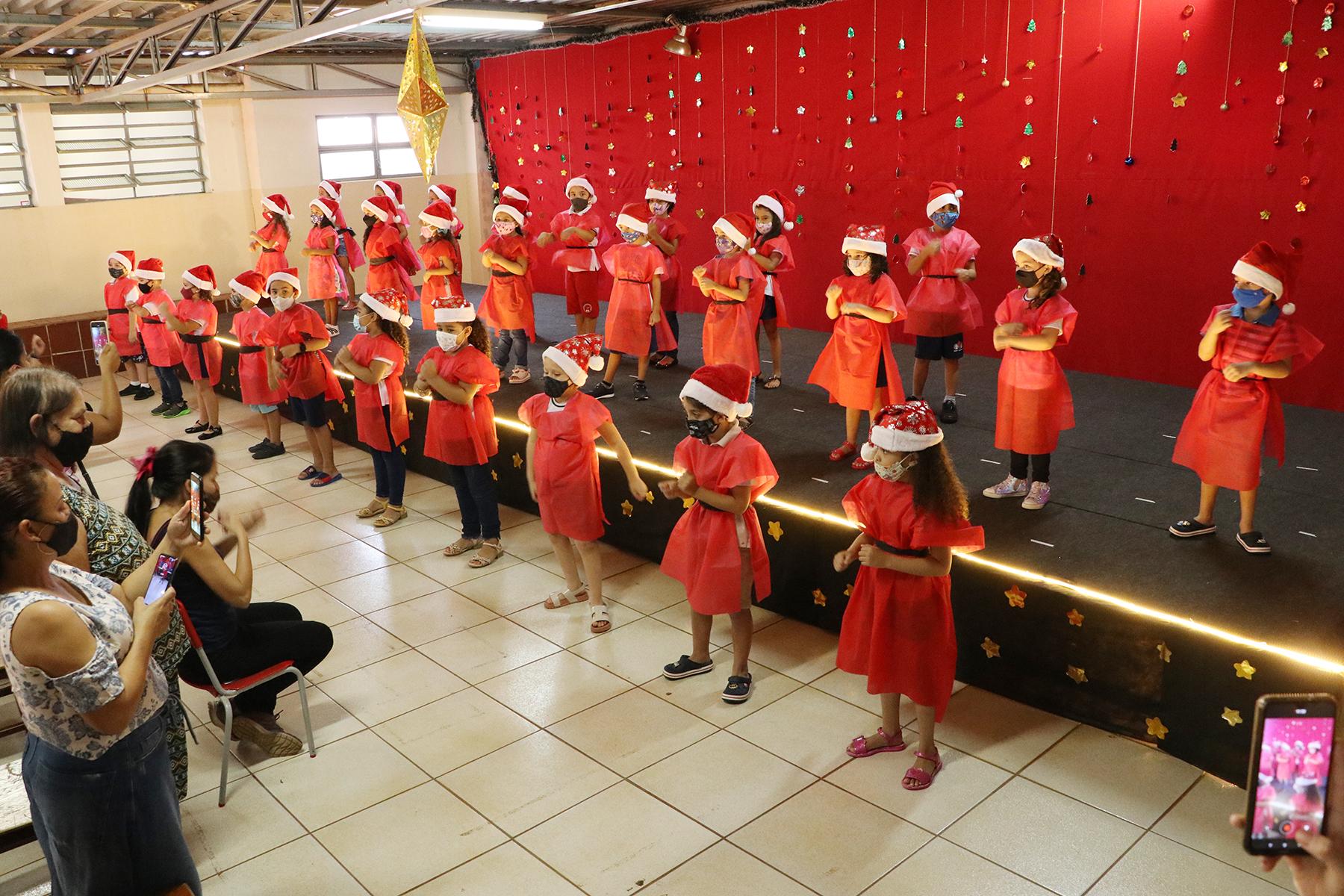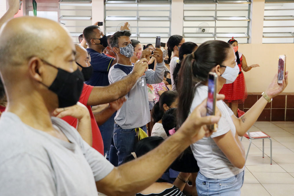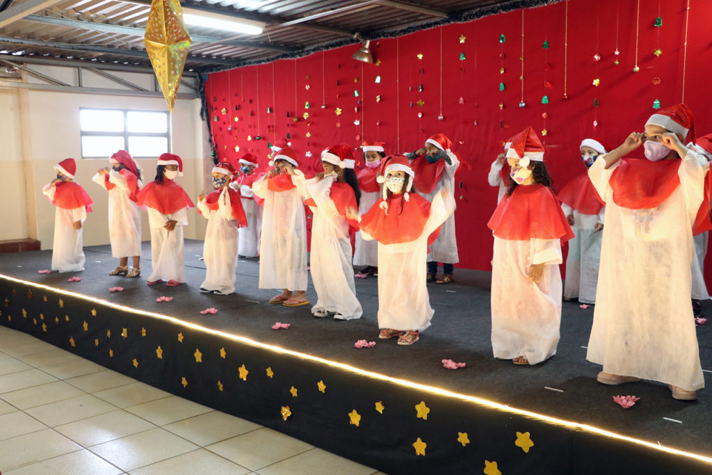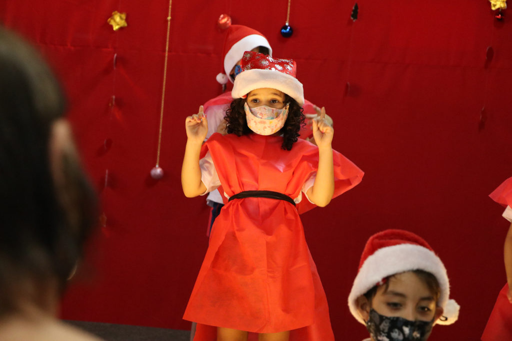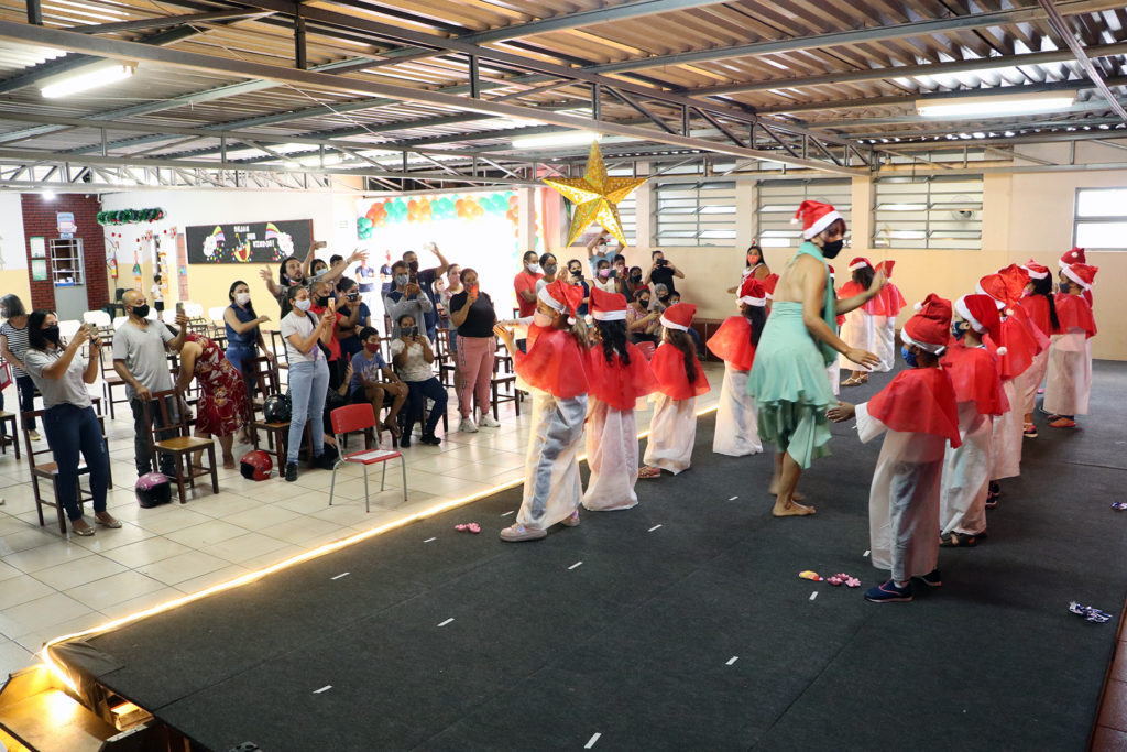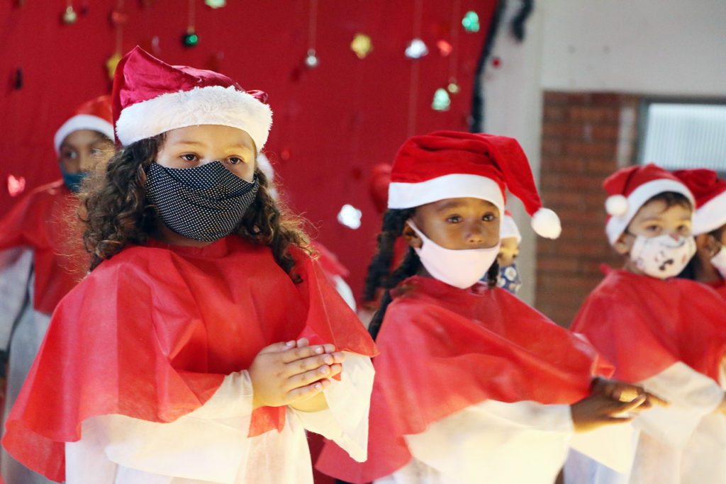 Os alunos da Escola Municipal de Educação Infantil(EMEI) Aplicação participam hoje, 03, da cantata de natal da unidade escolar. As apresentações artísticas são das crianças do infantil III, IV e V. Várias canções natalinas emocionaram os pais presentes. A gestora da escola, Lais Oliveira, destacou a importância do evento. “É muito bom realizar esse tipo de atividade que envolve a comunidade. Os pais ficam felizes e os alunos gostam disto”, reforçou. A cantata natalina especialmente nesse ano nas escolas municipais tem motivos de celebrar o dom da vida e agradecer pela retomada das aulas presenciais.