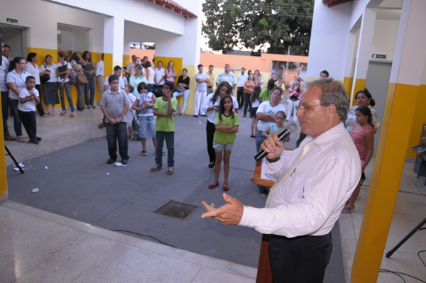 Levando o nome de um dos mais tradicionais nomes da política rio-verdense a unidade escolar conta com uma área de 543 metros quadrados e um investimento de R$ 350 mil a escola foi totalmente reformada e ampliada criando mais conforto para a os alunos e funcionários. A gestora da unidade, Lucilene Lemes destacou as ações do governo municipal frente à educação de Rio Verde, sempre pautados na eficiência de gestão e planejamento. “Recebemos hoje não apenas uma escola nova mais um espaço para as mudanças de perspectivas e futuro”, disse. O presidente da Câmara, vereador Elias Terra falou sobre a qualidade das obras do município sobre tudo as voltadas à educação, sempre preocupado com ensino que consiste em uma chave para a evolução da sociedade. Representando Juraci, o procurador Limírio resaltou o investimento universal que o governo vem fazendo no sistema educacional da cidade, sendo R$ 22 milhões desde 2009. “Temos a honra de participar de eventos como esses, sendo momento de mudanças para a vida dessas crianças que certamente serão o de uma nação próspera e pujante”, destacou Limírio. Levy falou sobre o processo de climatização que as escolas do município irão passar sendo a Clodoveu Leão a próxima a receber todo o equipamento apropriado. Destacou ainda os constantes desafios na secretaria citando a inclusão bem sucedida de alunos deficientes da rede municipal juntamente com os demais alunos. “Todas as escolas estão autorizadas a pleitear imóveis nas imediações das unidades visando futuras ampliações esportivas”, disse Levy. Ato seguinte foi realizado o descerramento da placa inaugural e uma visita com todas as autoridades pelas dependências da escola inteiramente reformada.Fotos: Washington Oliveira