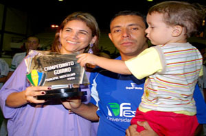 Com o resultado, time será o representante de Goiás na Taça Brasil de Clubes 2010. Como era de se esperar a partida foi bastante equilibrada com os dois times jogando duro e fechando o primeiro tempo em 3 a 3. No segundo tempo, jogo ainda nervoso, principalmente quando o marcador mostrava o empate para as duas equipes. Aí, para alegria do público que lotou o Ginásio Jerônimo Martins, Juninho, do São Luis, fez um gol contra favorecendo o Rio Verde, fechando o placar em 4 a 4. A campanha não poderia ter sido melhor. Foram 11 vitórias e apenas 3 empates. O artilheiro da competição foi o fixo Camarão com 19 gols marcados, melhor goleiro Wemerson, atleta revelação Attos e melhor técnico César Paraíba, todos do Fesurv/Rio Verde/Rinco. O técnico César Paraíba utilizou os seguintes atletas na competição: Jean Ferreira, Marquinho, Jean Neguinho, Helinho, Thiaguinho, Fernando, Wellington, Wemerson, Sergio, Magayver, Jhony Peto, Rodrigo, João Jairo, Camarão, Dheider e Attos. A comissão técnica contou ainda com o preparador físico Fausto, treinador de goleiros Osmar, mordomo Pedrão e os supervisores Renah Flamarion e Jailton. Jogadores da Fesurv/Rio Verde/Rinco comemoram vitória Torcedores lotam o Ginásio e equipe comemora com Prefeito e autoridades municipaisJogadores são homenageados