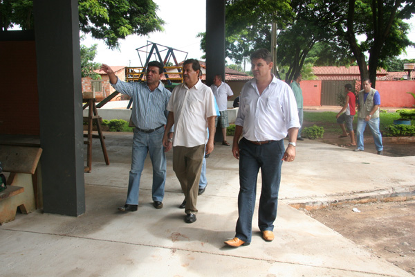 Com o objetivo de melhorar a infraestrutura do Distrito elevando a autoestima da população e prevenindo doenças causadas pelo acúmulo de sujeira foi dado o ponta pé inicial a estruturação e realização efetiva do programa. O projeto ainda conta com um aspecto de integração entre cidadãos e poder público que através de mutirões populares realizam o projeto. A solenidade de início das obras contou com a presença do Prefeito Juraci Martins e de grande parte de seu secretariado, o Subprefeito do Distrito de Lagoa do Bauzinho Paulo César destacou a importância de iniciativas como essa, pois demonstra a população local o zelo e carinho que a administração tem para com o distrito. Juraci Martins confirma seu compromisso com a população, sobretudo com os mais humildes e anuncia: “Temos esse projeto de calçadas para Rio Verde e iremos trabalhar muito para melhorar nossa cidade e Distritos”; diz o Prefeito Juraci Martins. Em ato simbólico o prefeito Juraci Martins, o vice-prefeito e Secretário de Ação Urbana Demilson Lima e o Subprefeito de Lagoa do Bauzinho Paulo César manejam o preparo do concreto para representar o início das obras. O Sr. Pedro Rafael foi um dos primeiros moradores a ser beneficiados pelo projeto. “Somente assim que conseguiríamos fazer (as calçadas), com ajuda do povo e do poder público”; disse o morador. “A valor de ações como essas tem uma importância monumental, o que é interessante de ressaltar é a parceria com a comunidade facilitando o trabalho da administração. Também com esse ato estamos prevenindo possíveis focos de dengue, pois estamos eliminando locais sujos onde acumularia água parada”; disse Juraci Martins. Vale destacar que a Secretaria de Ação Urbana está reformando totalmente a rodoviária local. Estima-se que a obra custará em torno de 25 a 30 mil reais, sendo refeitos todos os banheiros, revestimentos internos, estrutura elétrica, pisos, e cobertura. A obra deverá atender à comunidade local e demais cidadãos que necessitam do transporte rodoviário. Fotos: Washington Oliveira O subprefeito de Lagoa do Bauzinho Paulo César destaca a importância do projeto "Estamos investindo de 25 a 30 mil reais na reforma da rodoviária local", diz Demilson Lima Prefeito Juraci Martins pontua a importâcia da integração entre comunidade e poder público Demilson, Paulo César e Juraci Martins "põem a mão na massa" em ato simbólico Autoridades na residência do Sr. Pedro Rafael, um dos primeiros beneficiados do programa Calçada Solidária "Somente assim que conseguiríamos fazer as calçadas", diz Sr. Pedro Rafael. Juraci Martins e Demilson Lima vistoriam as obras de reforma da rodoviária.