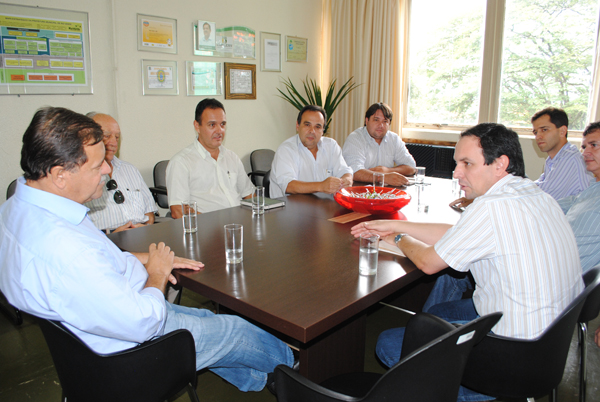 O prefeito Juraci Martins recebeu na tarde desta quinta-feira, 03, um grupo de membros da Associação de Produtores de Matéria-Prima para Produção de Bioenergia de Rio Verde (APMP). O objetivo da visita foi apresentar a Associação, que existe há três anos na Cidade, e tem como principal meta defender a diversificação da atividade rural. Conforme destacou Fábio Bellintani Iplinsky, produtor e membro da APMP, muitos produtores sentem-se inseguros para diversificar por não conhecer a fundo outras culturas como a cana-de-açúcar, por exemplo. “A Associação está crescendo a cada dia e ganhando mais membros. Hoje contamos até com profissionais técnicos que acompanham os fornecedores junto à usina”, comemora Fábio. Também estiveram no Gabinete do Prefeito o presidente da Associação, José Antônio Nogueira Júnior e os integrantes da APMP Rodolfo Chavaglia e Gustavo Rattes. Juraci Martins ressaltou ser um imenso prazer receber o grupo, falou da importância da Associação e colocou-se à disposição para apoiá-la no que for necessário. “A monocultura, se levada ao extremo, compromete mesmo a biodiversidade. É exemplar o trabalho realizado por vocês. Parabéns”, destacou o Prefeito. Fotos: Washington Oliveira Grupo apresenta os objetivos da Associação ao Prefeito Eles ressaltam a importância de defender a diversificação da atividade rural Juraci Martins elogia a Associação e oferece apoio