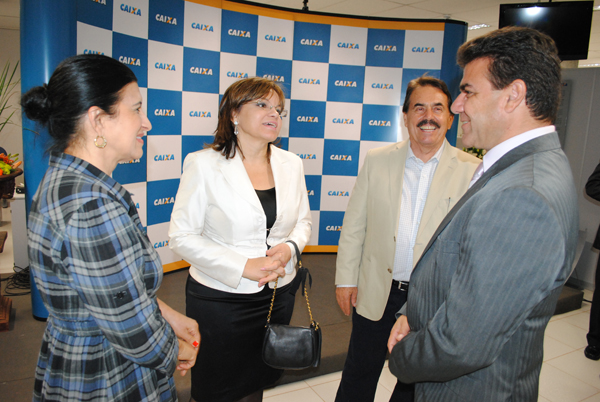 Fotos: Washington Oliveira Juraci Martins acompanhado pela superintendente da Caixa Marise de Araújo e o gerente da agência Antônio Moraes Descerramento da placa inaugural da nova agência Antônio de Moraes destacou o grande potêncial de todos os funcionários empenhados na realização das novas instalações Vereador Luíz Cesar representou o Poder Legislativo destacando a importância da instituição O prefeito fez um paralelo entre os princípios convergentes de solidariedade da Caixa e da Administração Municipal "A Caixa é uma banco com alma social", disse Marise de Araújo Dep. Heuler Cruvinel e Prefeito Juraci com a diretoria e clientes da Caixa Econômica Federal Convidados e autoridades prestigiaram o evento de inauguração Demilson Lima e Sec. José Carlos também prestigiaram a solenidade