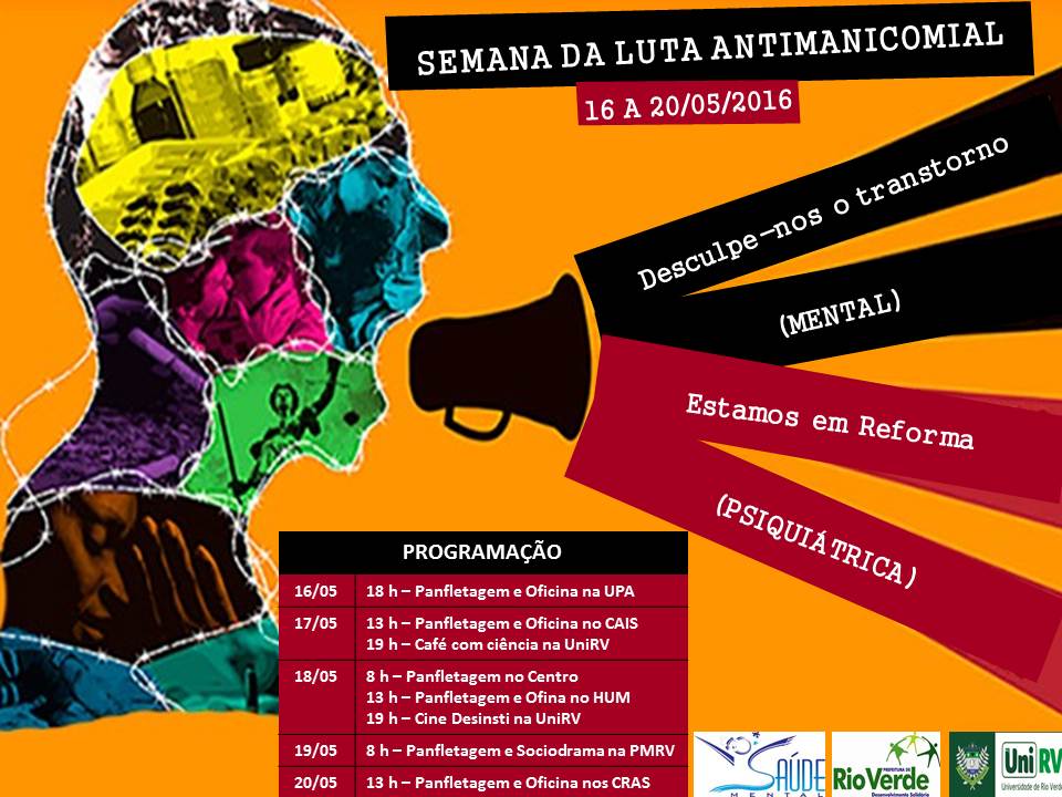 A Prefeitura de Rio Verde através da Secretaria Municipal de Saúde realizará entre os dias 16 a 20 de maio a Semana de Luta Antimanicomial.
