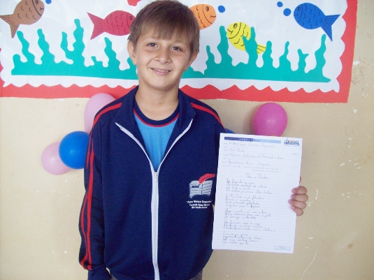 No Estado de Goiás, apenas cinco textos foram selecionados, sendo um de Rio Verde. O representante de Rio Verde é o aluno Jonathan Luis Kuczirca, matriculado no 5º ano, da Escola Municipal Rural de Ensino Fundamental (EMREF) “Água Mansa Coqueiros”. Nosso semifinalista e sua professora Márcia Leão participarão, no mês de novembro, da etapa regional, em Fortaleza – CE.