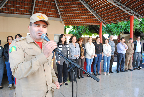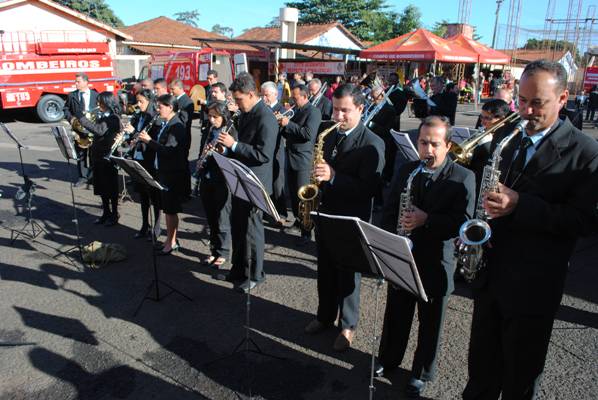 Uma apresentação de fantoches evidenciando a importância do número 193 foi a primeira atividade do evento. Por meio de muita diversão, foi transmitida a mensagem de conscientização ambiental, segurança doméstica, entre outros temas abordados pelos bonecos, a todos os participantes. Na ocasião, também foi realizada a abertura oficial do programa Bombeiro Mirim, que existe graças a uma parceria com a Promoção Social, através do Programa de Erradicação do Trabalho Infantil (Peti) e desenvolvido pelo Corpo de Bombeiro. O projeto tem como finalidade a socialização de crianças e adolescentes, que recebem uniforme, material escolar e alimentação, além de ter reforçados a importância da disciplina para obtenção de sucesso na vida. As atividades acontecem no contraturno do período escolar. Os inscritos recebem aulas de noção de primeiros socorros, civismo e cidadania com respeito aos símbolos nacionais, noções de educação no trânsito, higiene pessoal, educação familiar e ambiental, além do reforço escolar. O comandante do 4º BBM, Tenente Coronel Cléber Cândido abriu o evento agradecendo a presença de todos, em especial da secretária Clarice Martins. Segundo destacou, a comemoração é fundamental e acontece em todos os estados brasileiros. Cléber ainda apresentou as instalações do Batalhão à Secretária, contando um pouco da história do Corpo de Bombeiros em Rio Verde e ressaltando a importância dos comandantes anteriores. O comandante ainda elogiou o trabalho de Clarice frente à pasta. “Parabéns pelo excelente trabalho social que vem desenvolvendo na Promoção Social. Tenho certeza que a parceria com o Corpo de Bombeiros permanecerá por muito tempo, pois temos o mesmo objetivo: inserir valores em nossas crianças,” destacou. Clarice Martins destacou que, para a secretaria, a parceria só vem agregar valores para a sociedade e reconheceu a importância e seriedade do trabalho realizado pelo Corpo de Bombeiro, dizendo que são Anjos da Vida. “Agradeço ao coronel Cleber pela parceria e sei que o projeto já é um sucesso, pois auxilia na inserção de caráter nas crianças. Sei que daqui sairão crianças com conscientização da responsabilidade de um verdadeiro cidadão,” disse, justificando a ausência do prefeito Juraci Martins, que está viajando. A programação também contou com a entrega de certificado do curso ministrado pelo 4º BBM sobre prevenção de acidente no ambiente doméstico. Fotos: Washington OliveiraBanda Filadelfo Jorge apresenta o Hino Nacional