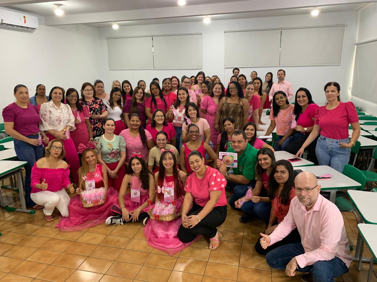 Hoje, nossas servidoras da secretaria de educação vestiram a cor rosa e participaram de uma ação especial de conscientização sobre o câncer de mama. A Secretaria de Educação, em apoio à campanha Outubro Rosa, ofereceu uma roda de conversa sobre a importância da prevenção e do diagnóstico precoce.