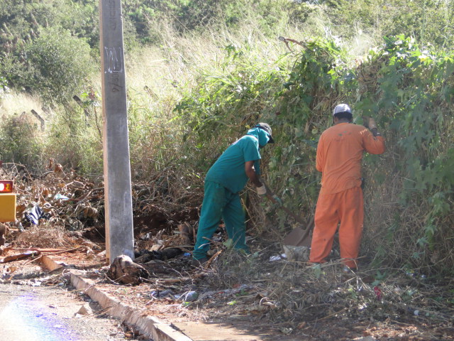 No setor Pauzanes, próximo ao Thermas Park, máquinas e operários estão trabalhando intensamente na limpeza e roçagem de lotes e calçadas. Além desta, outra equipe continua atuando no Parque das Laranjeiras fazendo o mesmo trabalho. Praças e canteiros de avenidas também têm recebido atenção especial da pasta. Os trabalhos estão cada vez mais intensod e já é possível notar a diferença pelas ruas do Município, que está mais limpo e com os jardins bem cuidados. “Nosso objetivo é reduzir a zero o lixo em Rio Verde e estamos trabalhando com afinco para chegar a esta meta,” ressaltou o vice-prefeito e secretário de Ação Urbana, Demilson Lima.Fotos: Secretaria de Ação Urbana Trabalhadores atuam na retirada de lixo de lotes e calçadas Máquinas trabalham a todo vapor Grande volume de lixo é retirado do local Prefeitura quer deixar a Cidade cada vez mais limpa e bonita