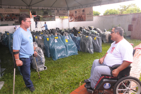 Segundo o presidente da Adefirv, José Carlos Queiroz, em 2013 serão entregue 286 equipamentos para diversos portadores de necessidade especiais. “A nossa instituição tem trabalhado incançavelmente para trazer mais benefícios aos necessitados”, comentou. Vale destacar que todos os aparelhos (órteses, próteses e meios auxiliares de locomoção, como cadeira de rodas, cadeira higiênica, andador, bengala e muleta), são feitos de acordo com altura, peso, largura e deficiência do paciente, conforme medição realizada anteriormente. Sobre o Programa O Reabilitar é um programa do Ministério da Saúde, gerenciado pelo Hospital Vila São Cottolengo, de Trindade-GO, que tem por objetivo atender pessoas portadoras de deficiências ou necessidades especiais, através da doação de aparelhos. O Hospital São Cottolengo é reconhecido pelo Ministério da Saúde como referência no atendimento de habilitação e reabilitação física e auditiva. A unidade mantém o Programa Reabilitar – de medicina física e auditiva. Devido à necessidade de estender o Programa Reabilitar a outras cidades e entidades, foi criado, em 2005, a edição itinerante, que funciona por meio de parcerias com os municípios atendidos pelo Programa. Fotos: Washington Oliveira Entrega oficial será feita amanhã, 29 Próteses e meios auxiliares de locomoção, como cadeira de rodas, andador, bengala e muleta serão entregues