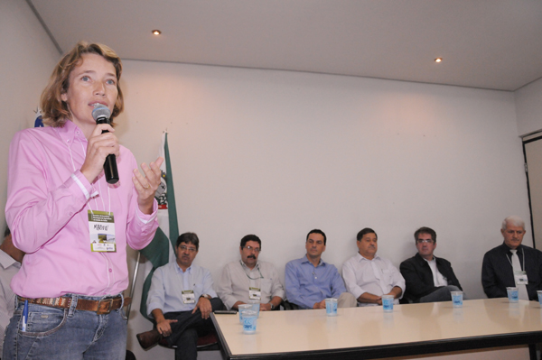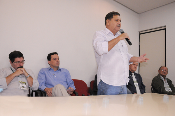 Em linhas gerais, o Encontro é a oportunidade para que secretários municipais das cidades participantes levantem novas ideias e ações que podem promover o desenvolvimento do setor agropecuário em seus municípios e que realizem um intercâmbio de informações entre os governos estadual e municipal sobre as atividades que envolvem agricultura e pecuária.   Fizeram parte da mesa de abertura, além do Prefeito Juraci Martins, da secretária de Agricultura, Pecuária e Abastecimento e superintendente Municipal de Meio Ambiente, Marion Kompier e do secretário de Estado de Agricultura, Pecuária e Irrigação, Antônio Flávio de Lima: o chefe da Unidade Local do Ministério da Agricultura em Rio Verde, Jesus Garcia dos Santos; o diretor técnico do Sindicato Rural de Rio Verde, Alexandre Câmara Bernardes; Waldemar Pinto Serqueira, diretor de pesquisa da Emater, que representou o presidente da entidade, Luiz Humberto Guimarães; e Juan Carlos Alves Freire, diretor de fiscalização da Agência Goiana de Defesa Agropecuária (Agrodefesa), que na ocasião representou Antenor Nogueira, presidente da entidade. O ex-secretário de Estado da Agricultura, Paulo Martins, também esteve presente no evento.   Abrindo o evento, Marion Kompier agradeceu a presença do secretário de Estado das demais autoridades presentes. “É uma alegria estarmos juntos pensando em como fazer uma agricultura melhor para todos. A solução vem de nós, por meio de um trabalho direcionado”, disse.   Em seguida, Juraci Martins agradeceu o secretário Antônio Flávio pela escolha de Rio Verde para sediar o 8º Encontro. “É uma satisfação receber os representantes de 26 vizinhos nossos. Somos do setor ruralista, estamos prefeito”, falou. O Prefeito ainda defendeu o apoio aos agricultores familiares e citou dificuldades de conseguir os financiamentos junto aos bancos. “O apoio do Banco do Brasil, o apoio a atividade rural dá força aos pequenos produtores. Temos de voltar nossa atenção também à necessidade de assistência aos assentamentos, que nem sempre são assistidos”, apontou. Juraci terminou dizendo que ações voltadas para campo devem ser cobradas do Prefeito e do Governador. “Projetos que vão valorizar essa área precisam ser implementados. Precisamos investir em tecnologia, na cultura de hortaliças, e produzir leite de qualidade”, finalizou.   O secretário Antônio Flávio começou cumprimentando o Prefeito e agradeceu a ele a Marion pelo suporte à realização ao evento e discorreu também sobre as dificuldades com relação à recursos da pasta e otimizar ações que sejam eficazes. “Trabalhar sem sintonia os resultados são difíceis. E conquistar esses resultados é se esforçar continuamente e promover ações colaborativas com os municípios. Faltava essa participação de vocês”, disse. Antônio também destacou que a Direção Nacional do Fórum de Secretários de Agricultura do Brasil irá entregar um documento à presidente Dilma, solicitando que ela não vete o Código Florestal Brasileiro. Segundo ele, esse documento tem o apoio da Confederação da Agricultura e Pecuária do Brasil (CNA). “Precisamos defender o produtor e a produção”, finalizou.   Serão realizados onze encontros em todas as regiões do Estado até o próximo mês de junho. Os primeiros foram realizados em Alvorada do Norte, Porangatu, Goianésia, Nova Veneza, Jussara, Palmeiras de Goiás e Catalão, respectivamente. Após a realização de todos os Encontros, as informações e conclusões levantadas serão compiladas em um documento final que será entregue ao Governador Marconi Perillo, para que ele possa desenvolver novas políticas para o setor público agrícola. Esse documento final também será entregue às prefeituras, sindicatos rurais e demais entidades do agronegócio goiano.   Os Encontros tem sido desenvolvidos por meio de uma parceria entre a Secretaria da Agricultura, Pecuária e Irrigação do Estado de Goiás (Seagro), Agência de Assistência Técnica, Extensão Rural e Pesquisa Agropecuária do Estado de Goiás (Emater-GO), Banco do Brasil, Centrais de Abastecimento de Goiás (Ceasa) e Agência Goiana de Transportes e Obras (Agetop) e em Rio Verde tem o apoio da Prefeitura, por meio da Secretaria Municipal de Agricultura, Pecuária e Abastecimento (Seagro) e Superintendência Municipal de Meio Ambiente (Summa) e Sindicato Rural.                                   Fotos: Washington Oliveira Marion e Juraci receberam Antônio Flávio de Lima, que agradeceu pelo suporte dado para a realização do Encontro   Várias autoridades políticas estaduais e municipais fizeram parte da mesa    Representantes de 26 municípios próximos de Rio Verde vieram discutir e reivindicar melhorias Marion destacou a união de todos os secretários para que haja um trabalho eficaz na área