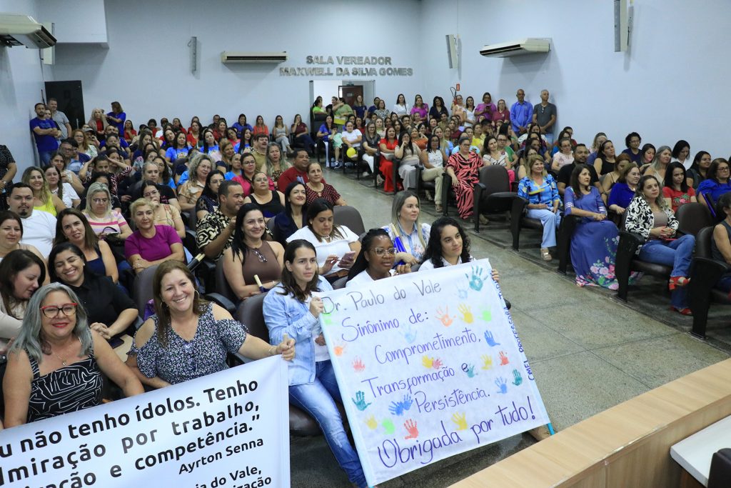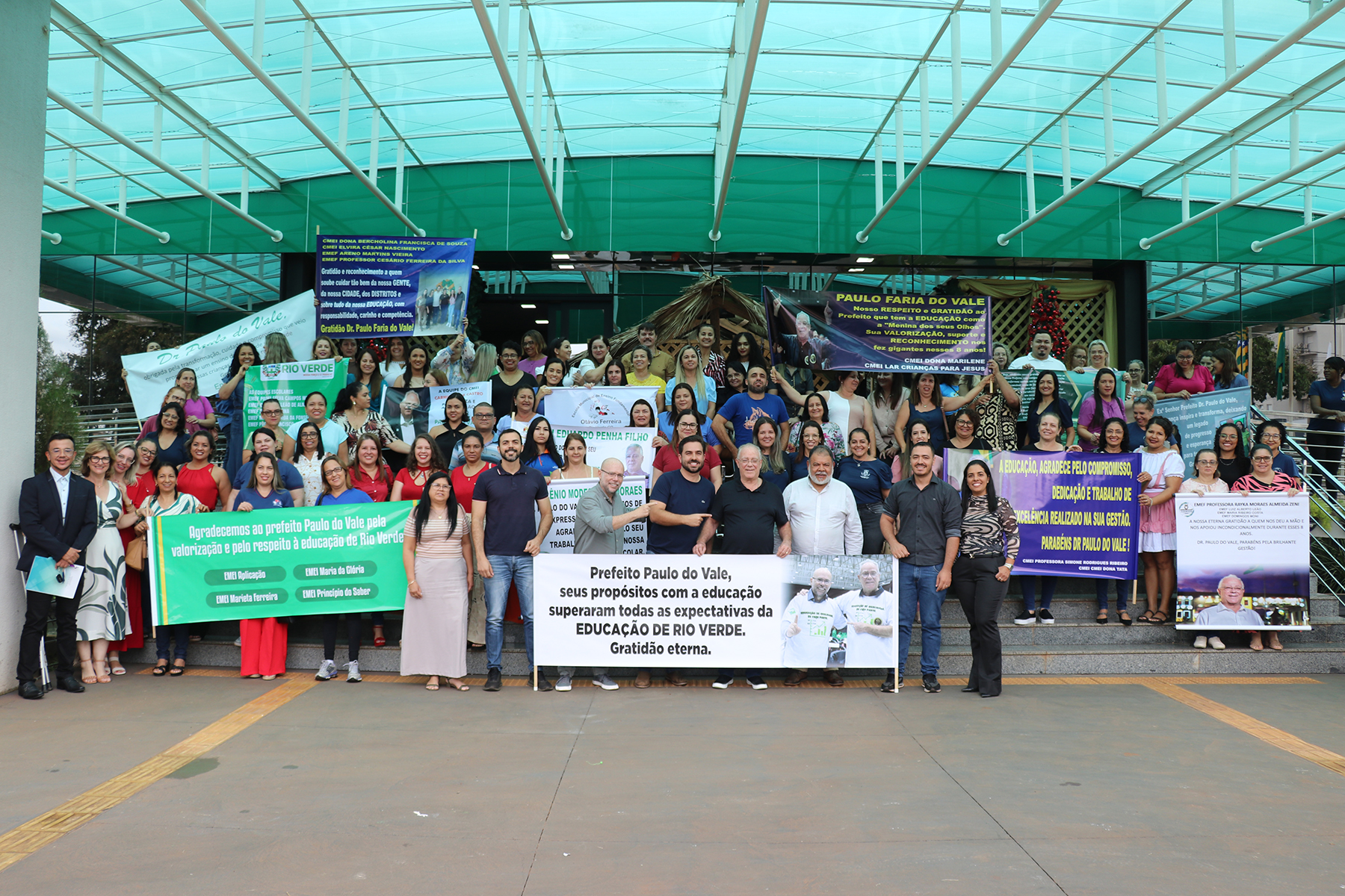 Com faixas os servidores da educação expressaram seu carinho e reconhecimento. Entre as mensagens, uma que resumiu tudo: “Prefeito Paulo do Vale, seus propósitos com a educação superaram todas as expectativas!”