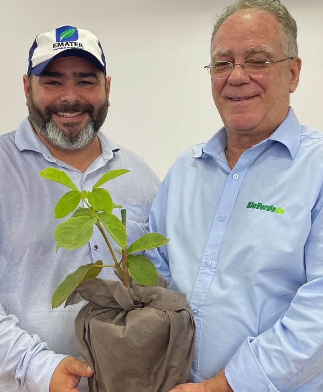 Kin Carlos, diretor da Assistência Técnica e Extensão Rural da Emater, entregou pessoalmente a muda ao prefeito, destacando a parceria contínua com a Prefeitura e os 25 anos de tecnologia da Emater.