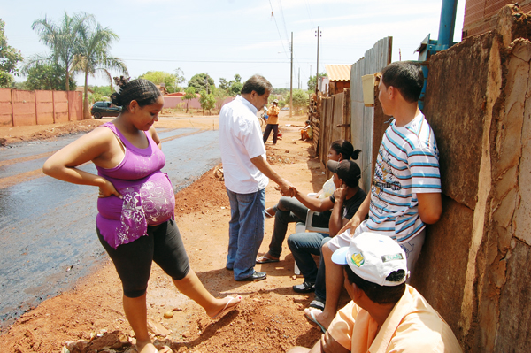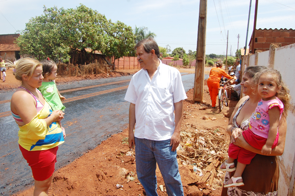 Juraci conversa com moradores da região e pergunta se estão gostando do serviço