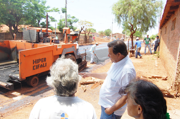 Ao observar o trabalho o Prefeito aproveita para esclarecer dúvidas quanto ao processo de pavimentação